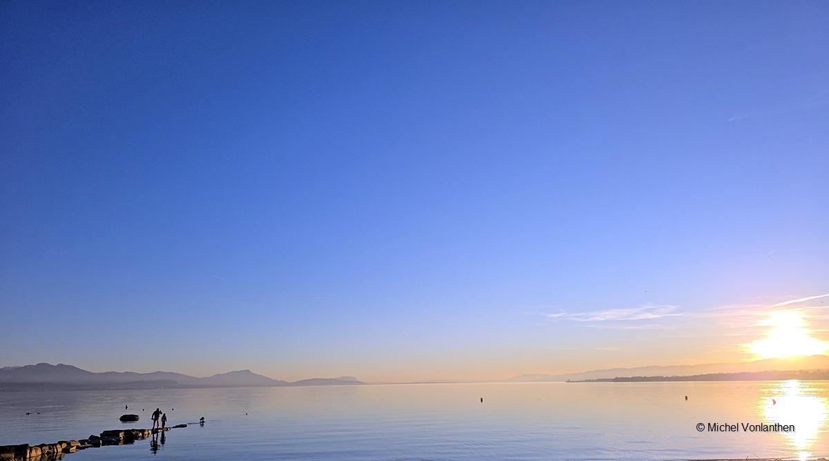 Je ne veux pas être rabat-joie, mais ne trouvez-vous pas qu'il y en a marre de ces nuages? Voilà ce que j'écrivais le 23 février. Je prends la même photo deux jours plus tard et voilà que c'est un ciel bleu immaculé. "Il" m'a entendu là-haut. Moralité: si vous avez besoin de beau temps pour une JA, contactez-moi puisque, dorénavant, je fais la pluie et le beau temps!... PS: n'oubliez-pas la bouteille! (Roger, un autre Muscadet!) |