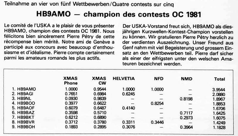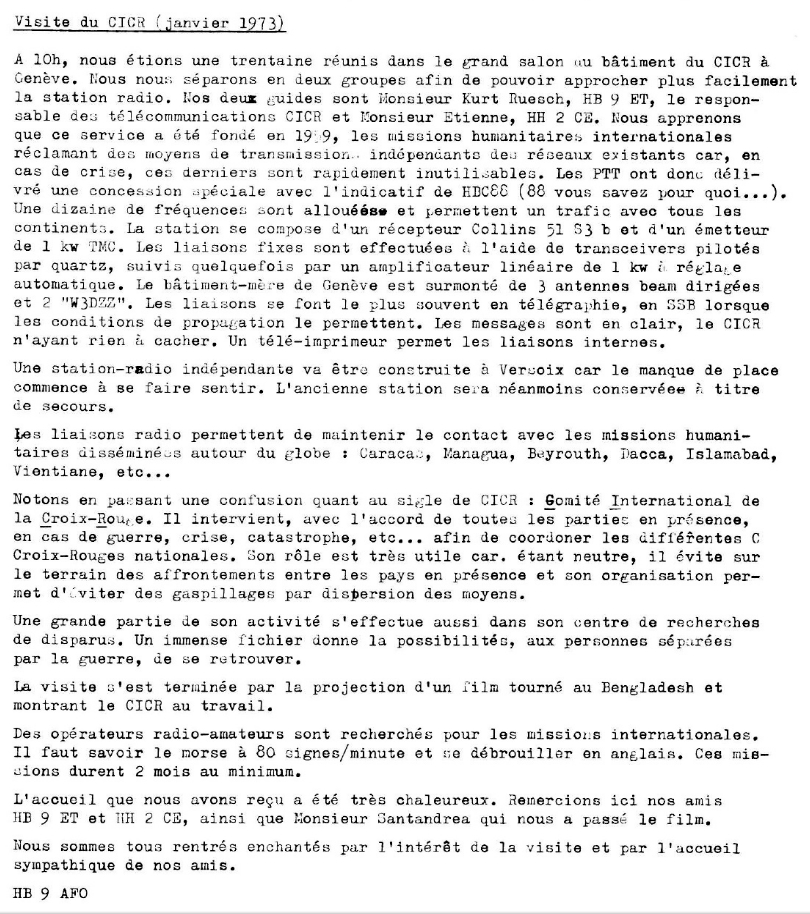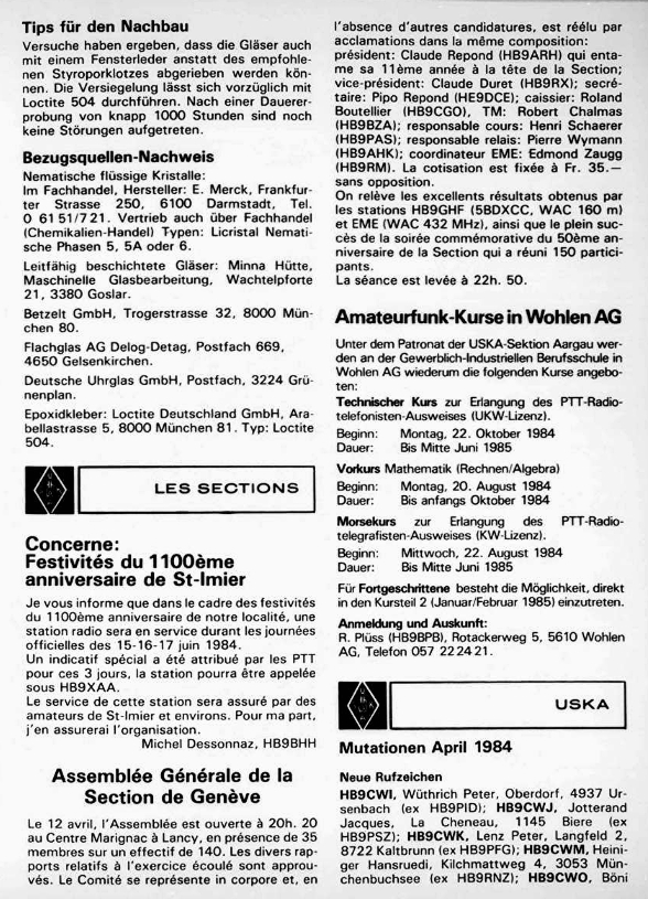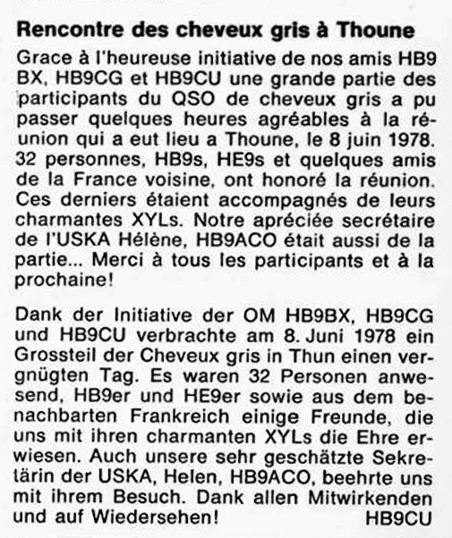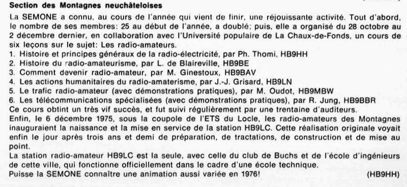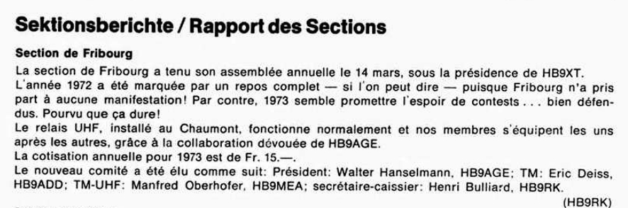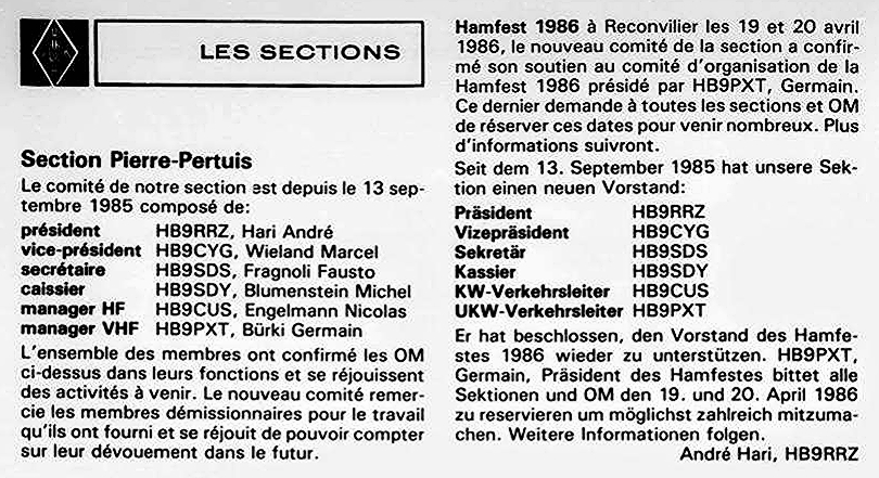 HB9AFO, secrétaire HB9STX, caissier HB9SLV