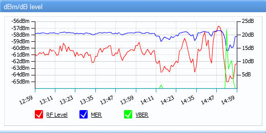 Dans la foulée, je fis l'essai de recevoir le signal 2326 MHz de F5DB directement avec le Minitiouner, sans passer par ma chaîne de réception habituelle. Cela confirma que la réception était la même en direct ou par le récepteur AR5001DX, dans les deux cas le MER (qualité du signal reçu) était identique. La bizarrerie détectée par F6BIG n'était donc qu'un problème d'affichage du niveau HF par le Minitiouner Pro.
