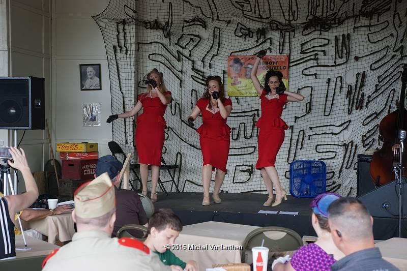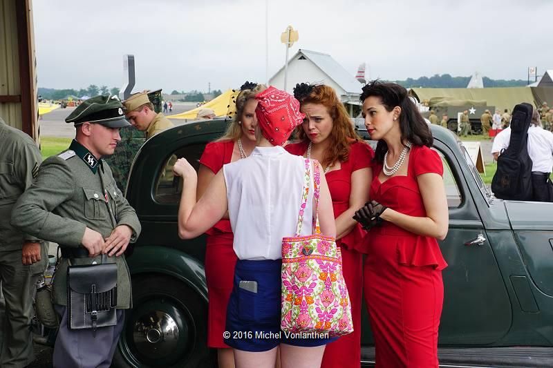 Les meeting était organisé sur l'aéroport de Reading par une association de passionnés de la dernière guerre mondiale. Et je dois dire que l'illusion était parfaite car le terrain était couvert d'avions, de véhicules et de matériels tous d'époque. Même les militaires semblaient d'époque, déguisés qu'ils étaient avec des uniforme sortis de l'histoire. C'était l'exemple d'un camp militaire, avec tentes, véhicules, cuisine, dépôts et même un mess des officiers dans lequel on pouvait boire un pot (boissons d'aujourd'hui...) tout en écoutant les 3 chanteuses plus vraies que nature qui chantaient sur scène des chansons d'époque. Vraiment on s'y serait crus!
